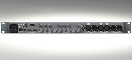 4 umschaltbare 10-Bit SD/HD/3G/6G-SDI Ausgänge. 1 umschaltbarer 10-Bit SD/HD/3G-SDI Monitorausgang