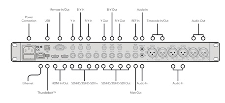 12 Tasten und ein Drehregler für die lokale Steuerung des HyperDeck Studio. Alternativ RJ45 Ethernet oder USB 2.0 Hochgeschwindigkeits-Schnittstelle.